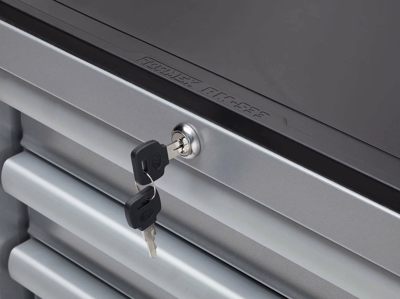 Supplied with the Tormek drawer inserts for the accessories that comes with the machine, for the Hand Tool Kit and for the Woodturner’s Kit. (Accessories and jigs not included.) Three extra drawers with practical rubber matting. It has two drawers that have a height of 6 cm and four drawers that are 9,5 cm high. Auto-return drawer mechanisms for soft closure.