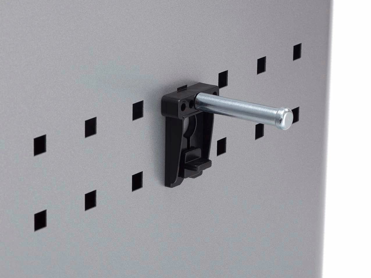 If you work with the special stones, you can easily store them on the side of the station. That way they can dry after usage without building moist into the cabinet. Two hooks are included.
