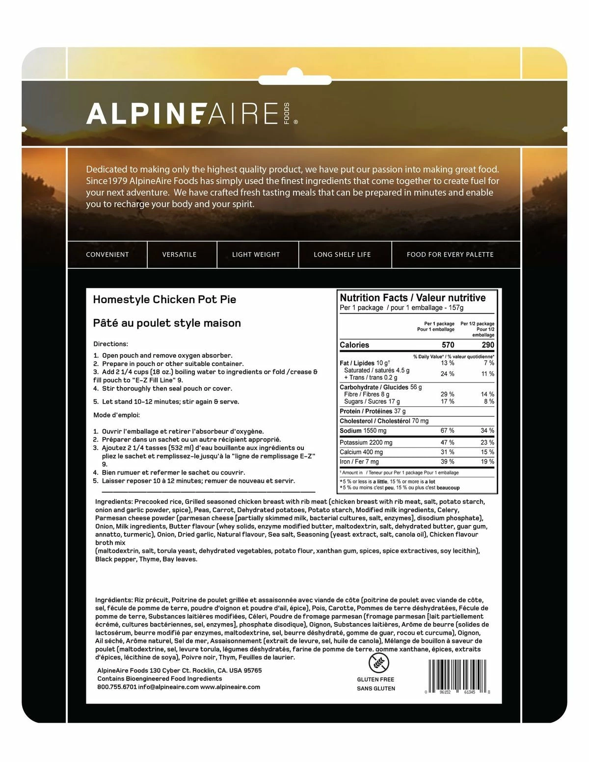 Tender white meat chicken in a buttery gravy with peas, onions, potatoes, and carrots seasoned with thyme.