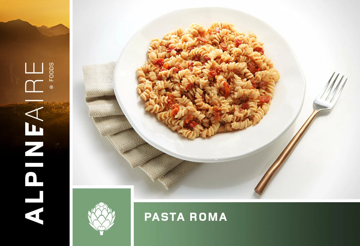 Rotini pasta with Romano and parmesan cheese in a creamy basil tomato sauce.