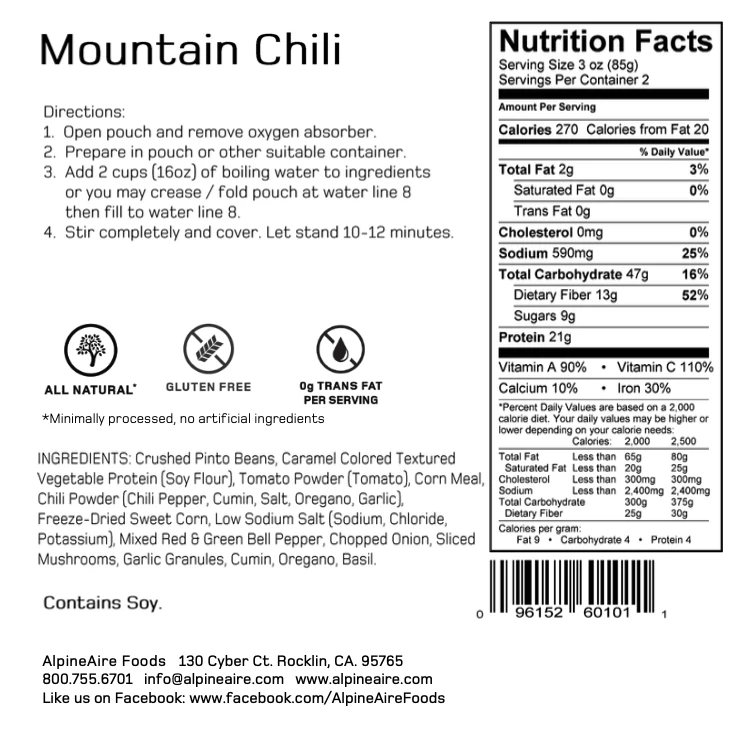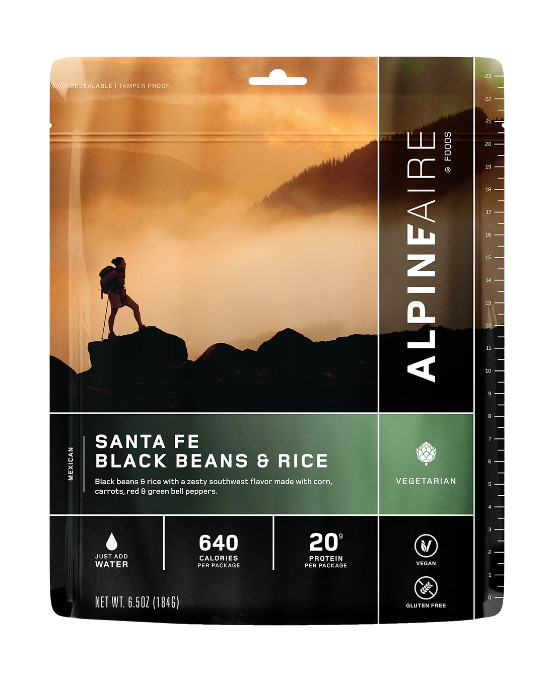 Black beans and rice with zesty southwest flavour; with corn, carrots, red and green bell peppers, onions, garlic and a mild jalapeño touch.