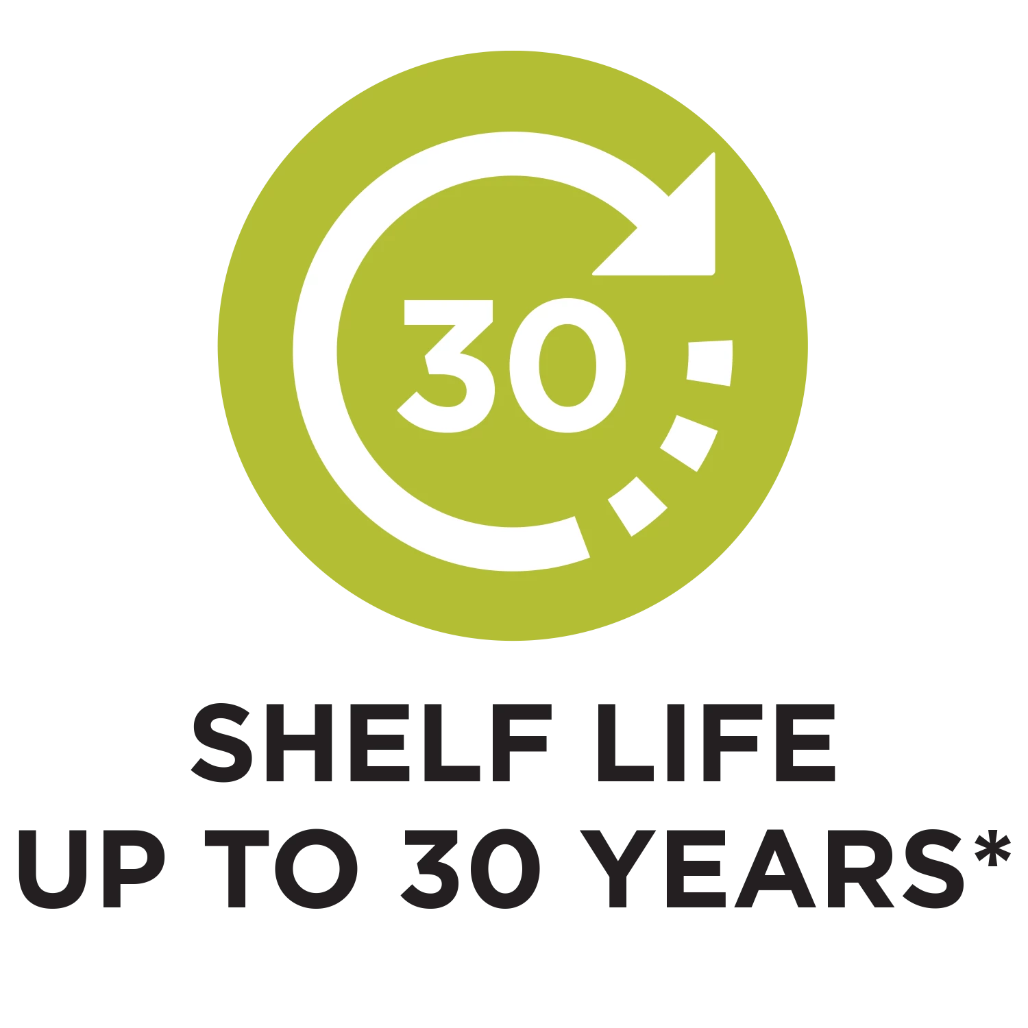 *Product good up to 30 years when unopened. Best when stored in a cool and dry place at temperatures between 55° F and 70° F. Actual shelf life may vary based on individual storage conditions.