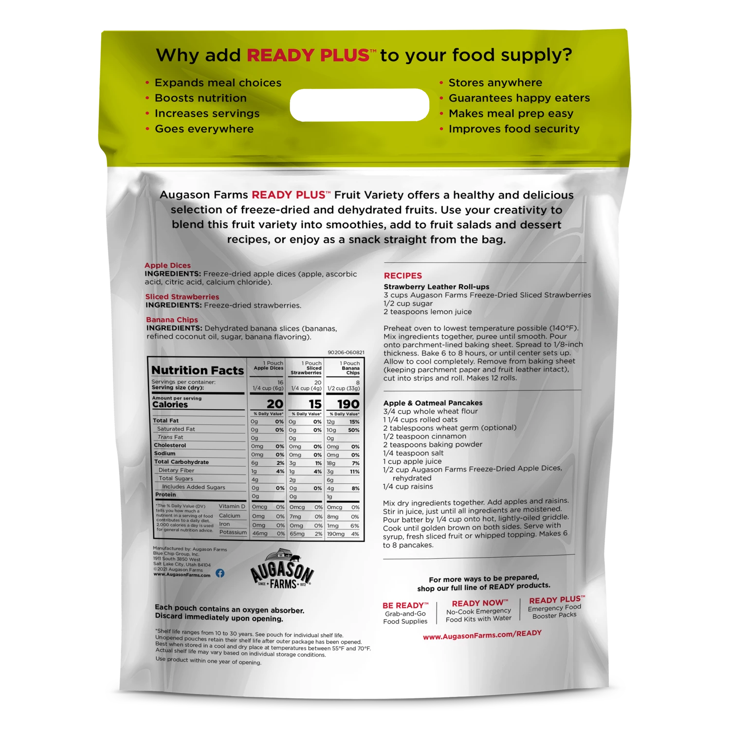 This Fruit Variety offers you a healthy and delicious selection of freeze dried fruits. Use your culinary ideas to blend them into smoothies, whip up a fruit salad, use in your favourite recipe or eat as a nutritious snack right out of the package. The nutrition of the freeze dried fruits is maintained giving them a long shelf life for emergency food storage or everyday use. A convenient and economical way to indulge all your fruit cravings.