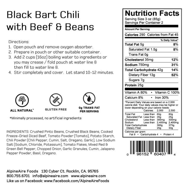 The Black Bart Chili is a bit bland for my liking, but it’s still a good option for a quick meal on the go. It’s lightweight and easy to pack.