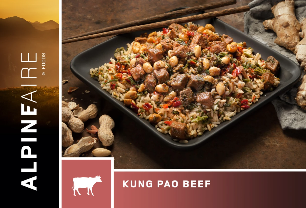 Bold, spicy, and sweet sauce paired with beef, peppers, peanuts, and rice.