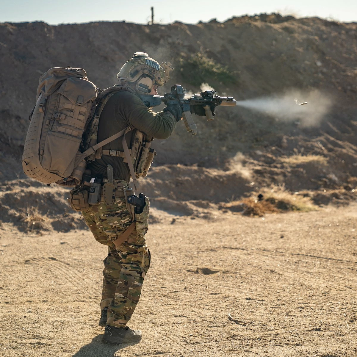 Although stripped down, the Tomahawk is still feature rich. A floating lid doubles as a removable fanny pack go-bag. Bottle holders, full length side pockets, and quick-stow sleeves are on each side. The main compartment is accessed through either a storm-collar top or the quick-pull spade front door. The interior features a Nylex back wall (15″x11″), tuck pockets, and EMOD Hookup links.
