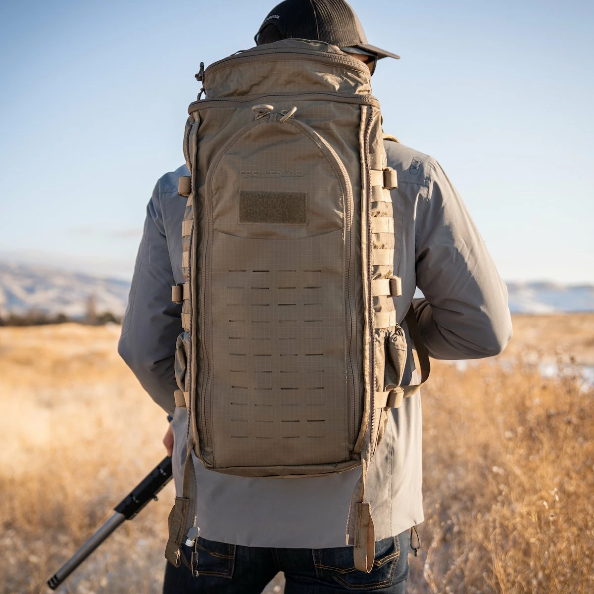 The G1 Little Brother pack is sold as part of our J79 Skycrane II system, and is a very popular stand-alone “3-day” pack. As part of the EMOD system, it works well with our J51 Warhammer, F1 Mainframe, or M1 Carrier packs. It features an expansion tunnel that allows you to insert any of our side scabbards (sold separately). With our A4SS Tactical Weapon Carrier installed, the pack functions much like our G3M Phantom. The pack features both top-loading and full-front panel loading. MOLLE/PALS webbing fills all useful spaces inside and out. There are two hydration sleeves on interior back wall sized for our WXP3L 3-liter bladders. A radio rack on back wall holds PRC-117 class military radios.