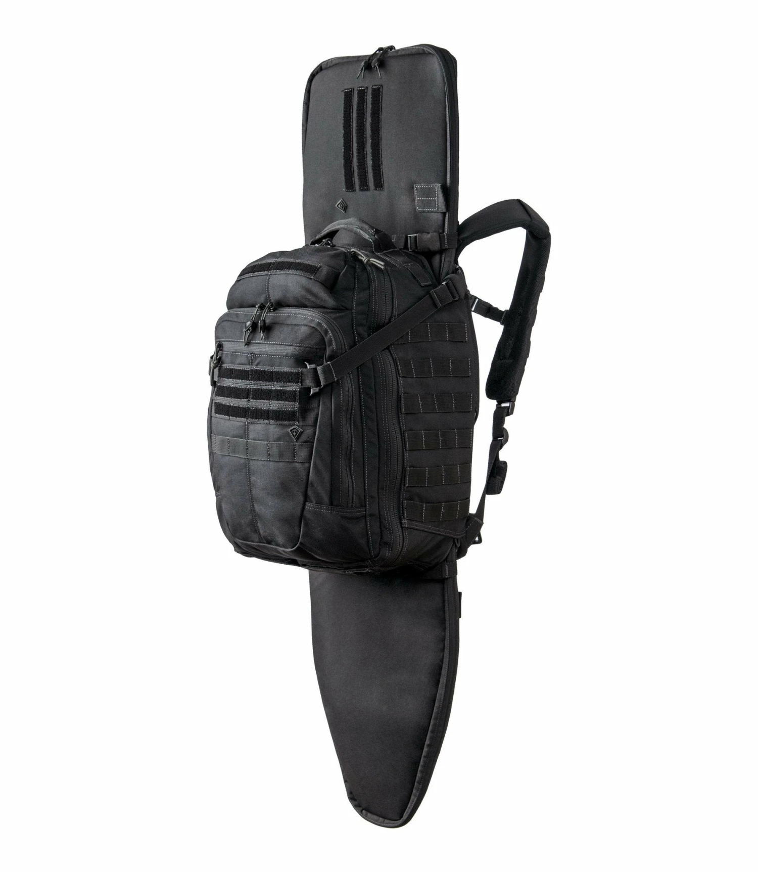 Our state-of-the-art Hook and Hang Thru System compartment works in unison with First Tactical Rifle Sleeves, allowing users the option of hands-free firearm carry.