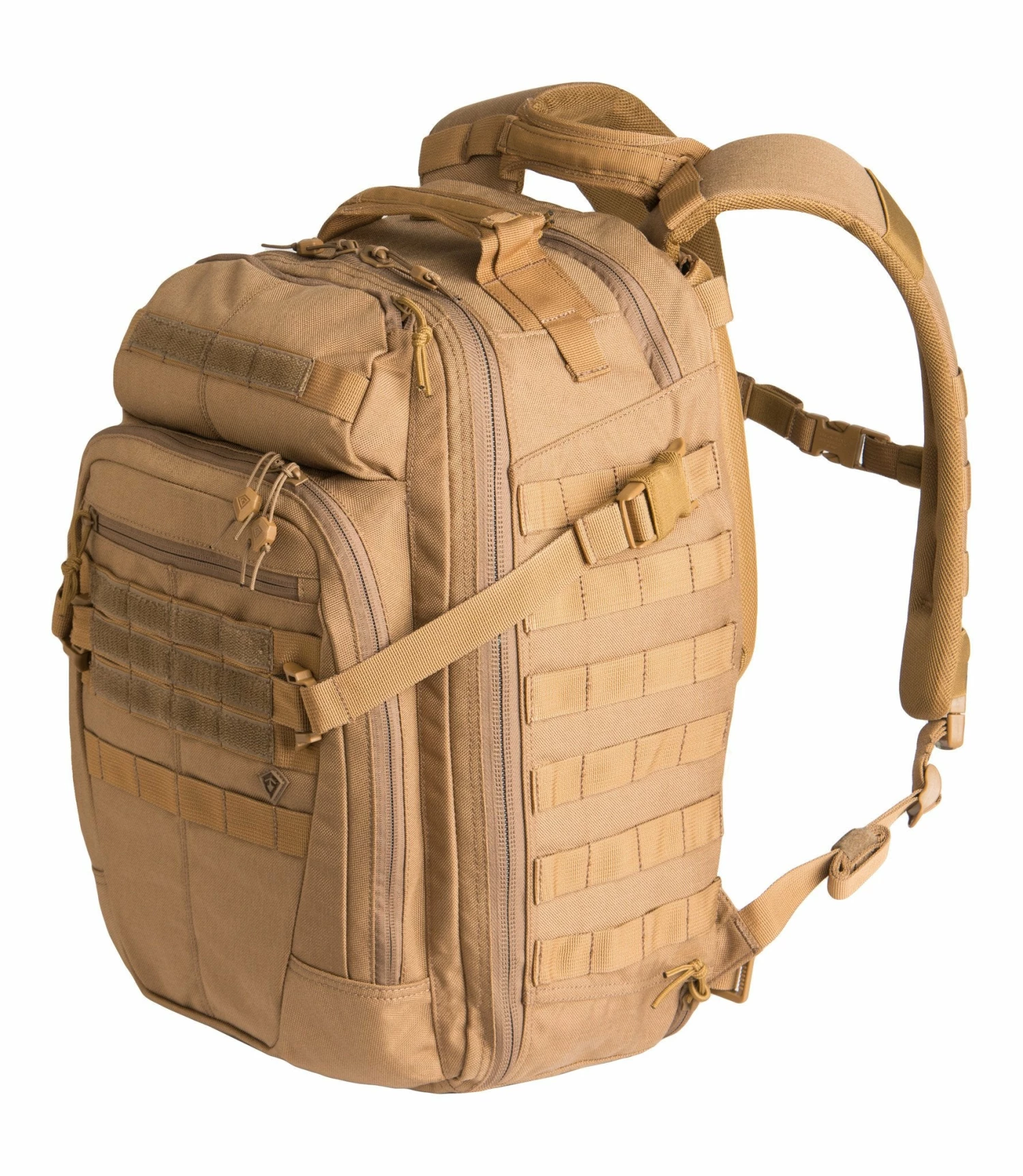 Dual density shoulder straps, double layered bottom, internal hook/loop mounting platform, and a fully functional hook/loop web platform compatible with MOLLE/PALS set this tactical backpack apart from others in strength, reliability, and comfort for the wearer. With ample space for essential gear, and featuring First Tactical’s new Hook & Hang Thru System, the Specialist 1-Day is the ideal backpack for short, overnight missions.