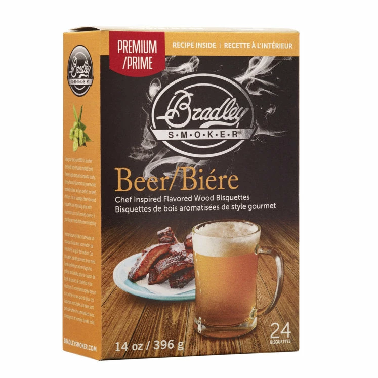 Beer Bisquettes for hop-infused smoked food. Perfect for beef, chicken, ribs or sausage.