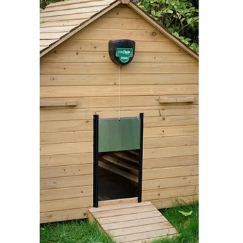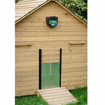 The ChickSafe Eco automatic chicken coop door opener is a tough and reliable system for automatically opening your coop door in the morning and closing it in the evening as light levels fall, keeping your birds save and giving you peace of mind. Complete with space-saving 2-stage sliding door kit with long lasting uPVC runners and fully exterior grade weatherproofed aluminium door.