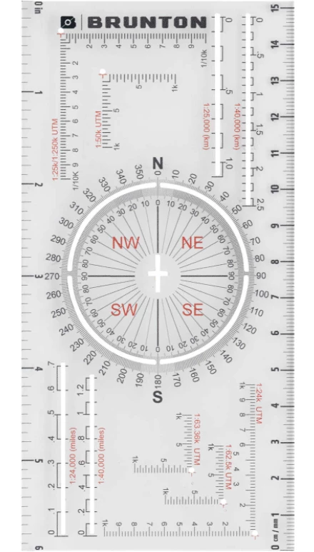 An all-in-one tool that includes standard and metric rulers, Romer grids for common map scales, and a unique protractor for measuring and plotting angles