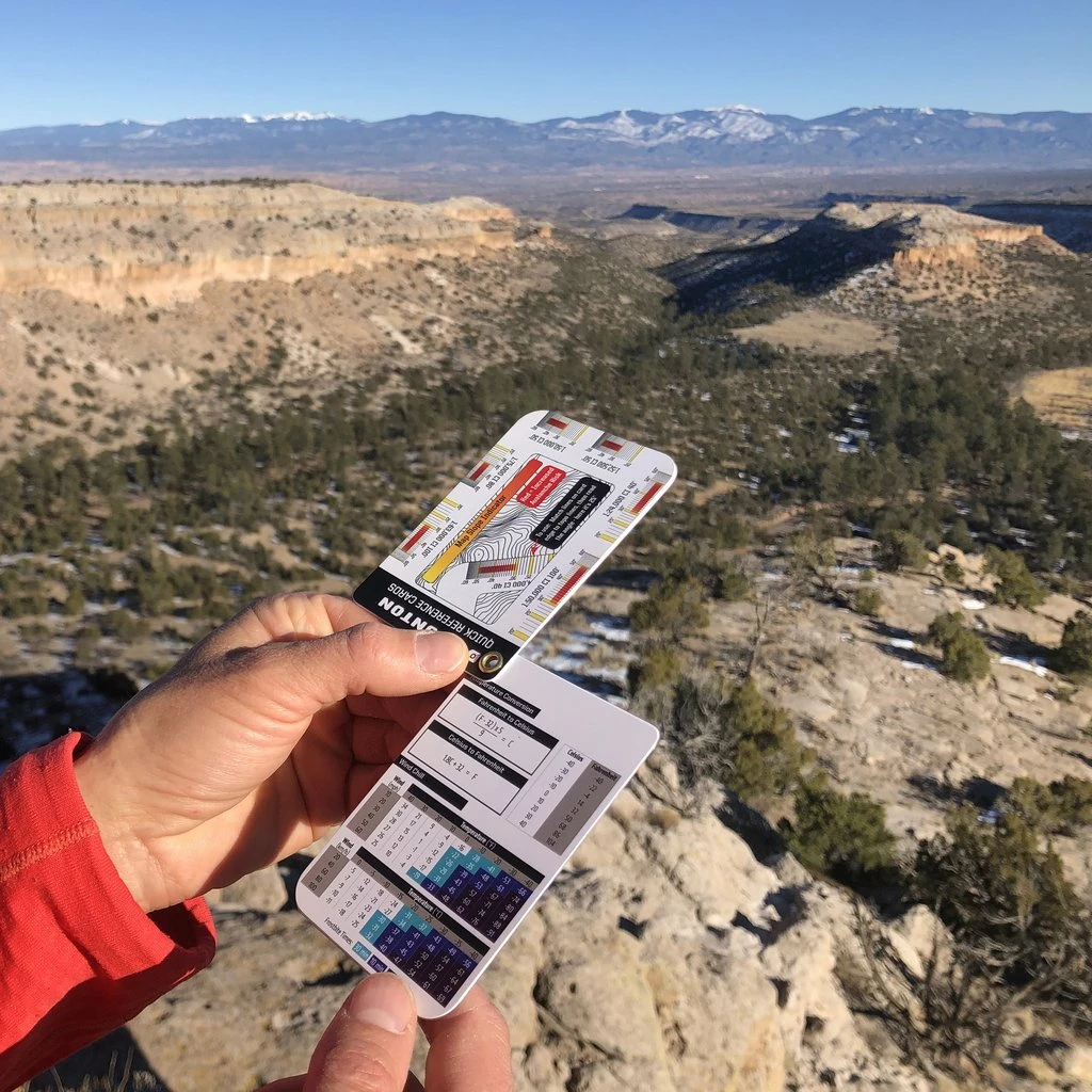 This set was created to be used with any map and compass and also stows neatly in the rubber foot of the TruArc20 (not included). They contain essential references and tips and techniques for efficient and safe wilderness travel. Our cards can help you calculate and determine distance and location on a variety of topo maps and will give you many of the basic tools and concepts that can help you make better decisions in the backcountry.