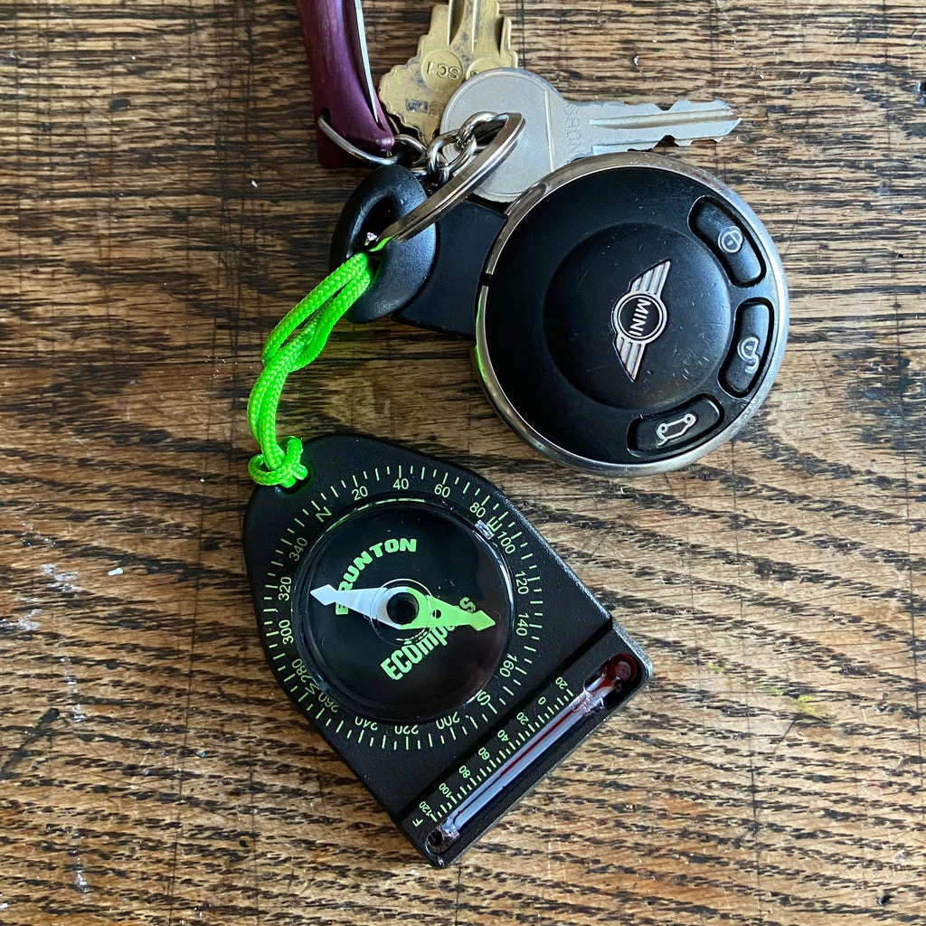 A small compass and thermometer to bring with you any time, that is made from recycled and reclaimed acrylic! Attaches easily to backpacks and clothing zippers for easy carrying and use. It can also be used as a practical keyring to keep all your keys together.