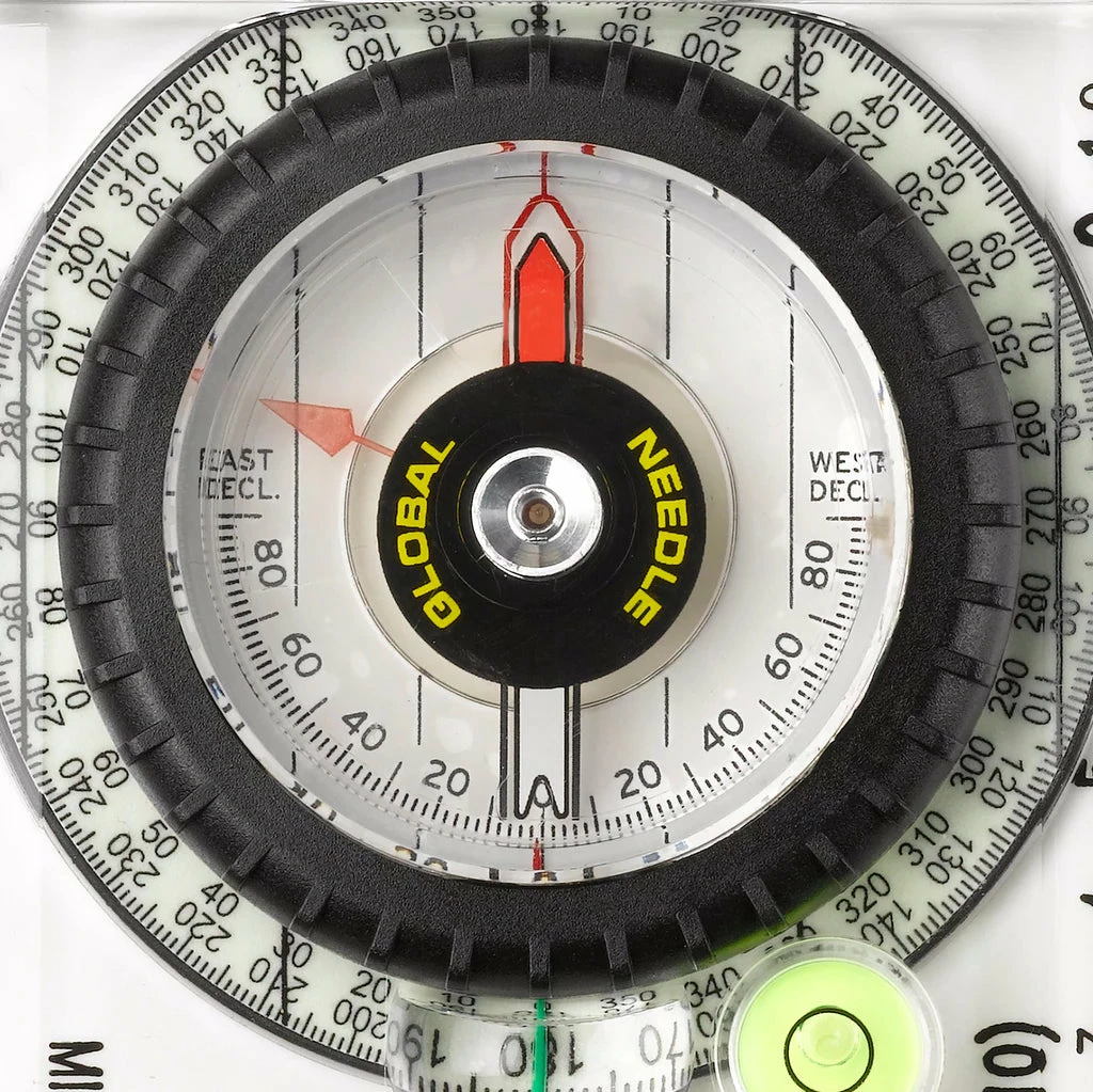 - Bubble level for absolute precision readings; keeping the compass level (not the needle level) is a critical aspect for taking an accurate bearings