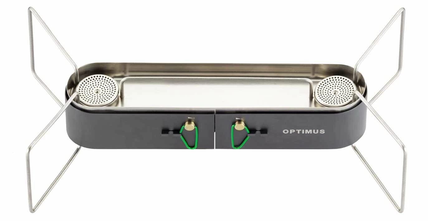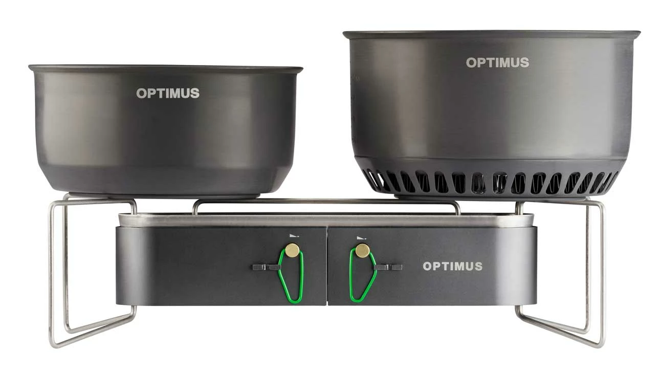 High performance, trailblazing lightweight construction made of durable, high-quality materials and an innovative patented compact design, are the hallmarks of the OPTIMUS Gemini Double Burner. Ideal for preparing multiple dishes, rapidly boiling water, or constant simmering for several hours, the Gemini brings new flexibility to outdoor cooking.