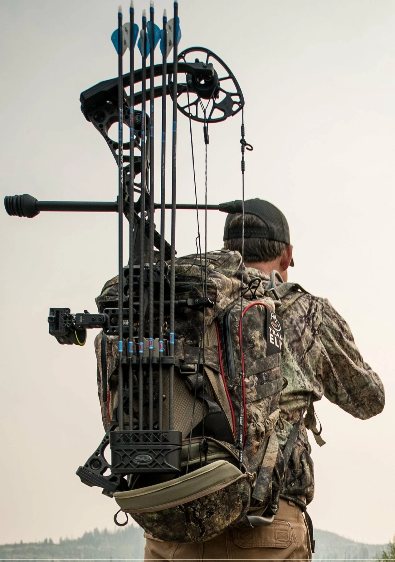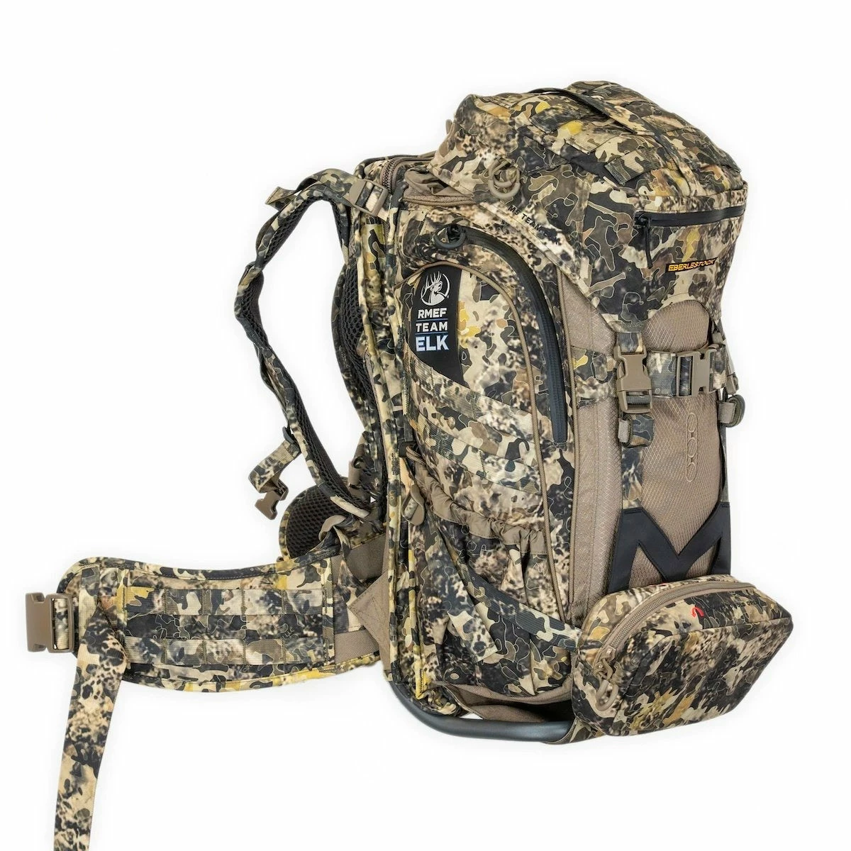The M5 RMEF Team Elk pack is one of the greatest all-around hunting packs ever created. It has a unique set of best-in-class features, including fold-away rifle scabbard, built-in bow carrier, Intex-II tubular aluminum frame, dual full-depth spotting scope and hydration pockets, grapple-compression straps, and more! It serves well as a day pack but is also great for shorter multi-day trips, and is a great game hauler. It has both front-loading and top-loading access.