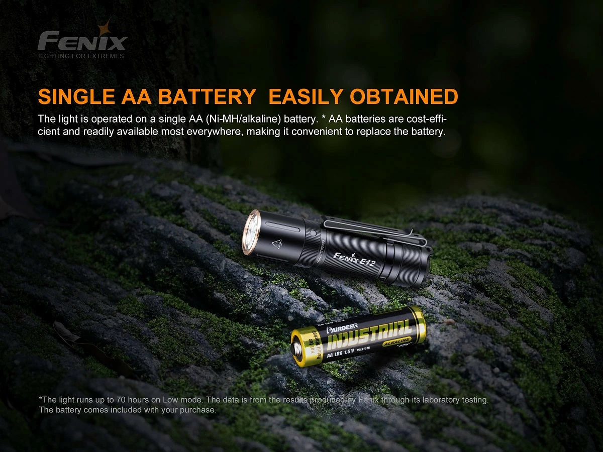 The all new Fenix E12 V2.0 ultra-compact EDC flashlight features some impressive new upgrades, some of these highlights include a two-position body clip, tail standing capability and IP68 rated protection. Offering multi-mode operation, light outputs can be selected by tail cap or head twist. Powered by a single AA battery, the lightweight Fenix E12 V2.0 flashlight has a maximum output of 160 lumens and can throw a beam up to 68m to meet your lighting needs. Made of durable A6061-T6 aluminum, featuring an ultrathin optical lens along with no standby current when the light is turned off the Fenix E12 V2.0 ultra-compact flashlight is there to light the way. It is the perfect combination of size and functionality.