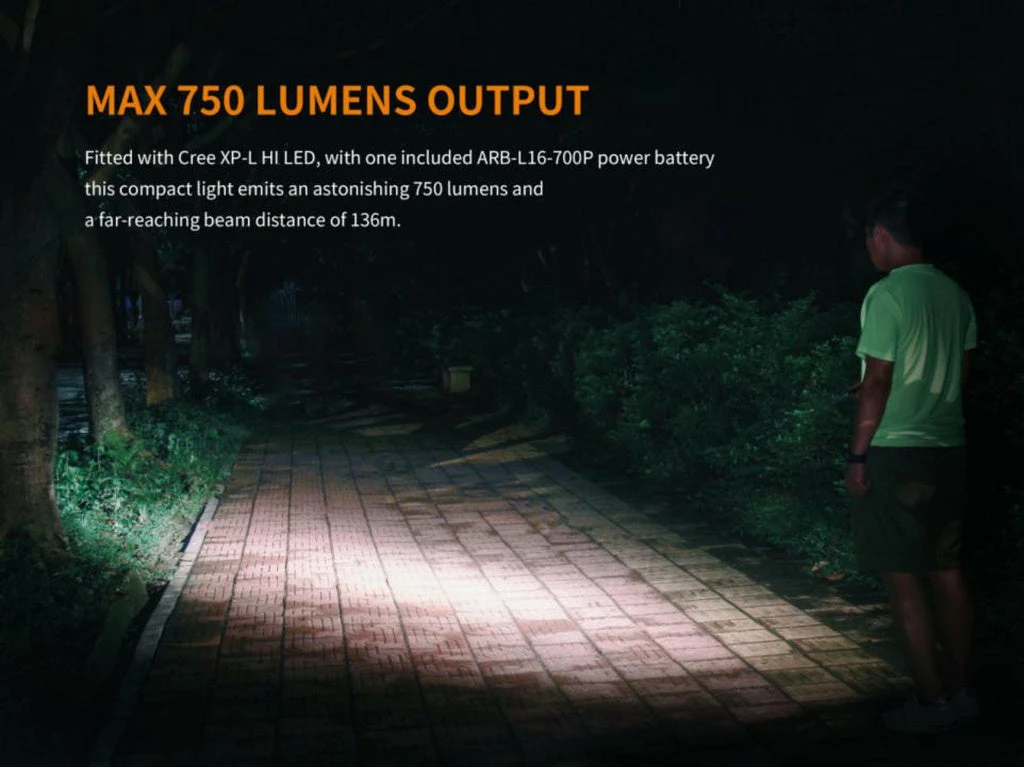 - Max output of 750 lumens and beam distance of 136m
