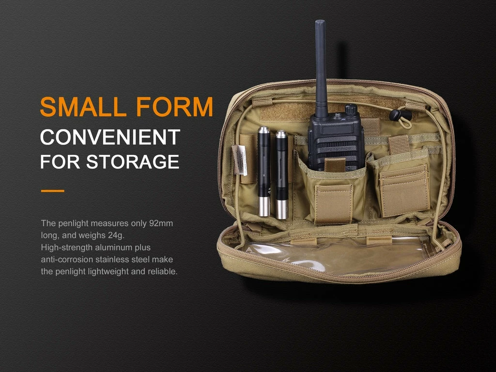 The LD02 V2.0 is a super compact EDC flashlight that features warm white and UV lights. It is fitted with a 90 CRI Cree XQ-E HI warm white LED and 365nm UV. One tail switch controls three output levels and the UV light output. Powered by one AAA battery, the light delivers a max output of 70 lumens. With a stainless steel tail switch for one-handed activation and output selection, and a light head also made of stainless steel, this exquisite and reliable penlight is the must-have for everyday carry, outdoor journeying and personal use.