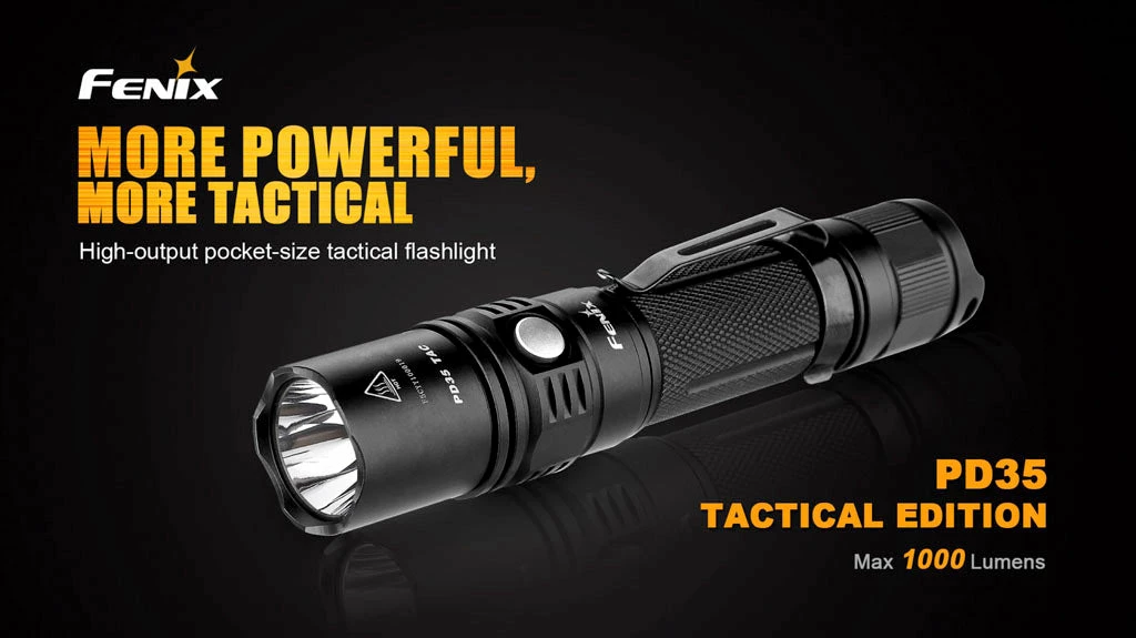 The Fenix PD35TAC (Tactical Edition) LED Flashlight, remains in it’s pocket-size form but surpasses the traditional PD35 in performance and tactical employment.