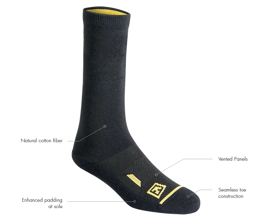 Comfortable, breathable cotton gives you a reliable tactical sock, while enhanced design takes it the extra mile. Made with natural fibre, moisture wicking and quick dry material, and with additional cushioning beneath the sole, you’ll have a sock you can trust. Measuring six inches these socks work best with short to medium height tactical boots.