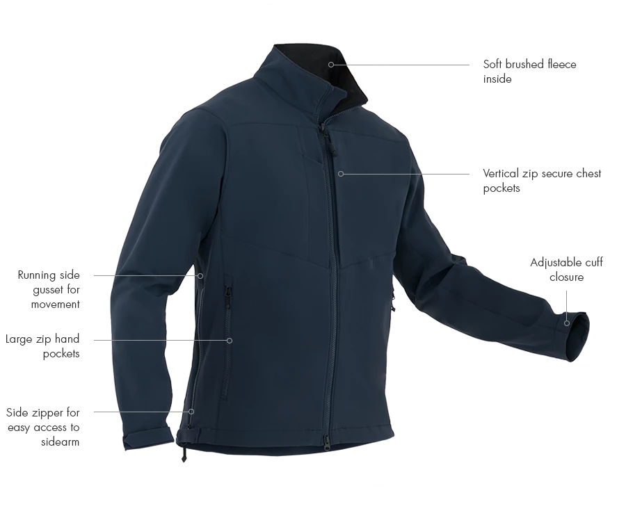 The First Tactical SoftShell Jacket is a valuable addition to your tactical clothing wardrobe. Water and wind resistance combined with a soft, brushed fleece lining, and zip-secure storage pockets make this remarkably stretchy shell the perfect lightweight companion.