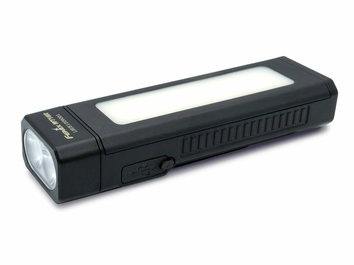 The Fenix WT16R magnetic flashlight is a great all-purpose work light. A single switch allows you to choose between three brightness levels of a forward facing spotlight, two floodlight levels and a yellow flash. Magnets on the tail and back let you attach the light to most metal surfaces for hands-free lighting. The sturdy clip allows you to attach the light to your belt, pocket or pack. Check the built-in battery’s status with the battery level indicator and recharge it via the USB type-C charging port. Quality built with an IP66 rated dustproof and heavy rain resistant, this flashlight will be your trusted tool in the field or on the job.