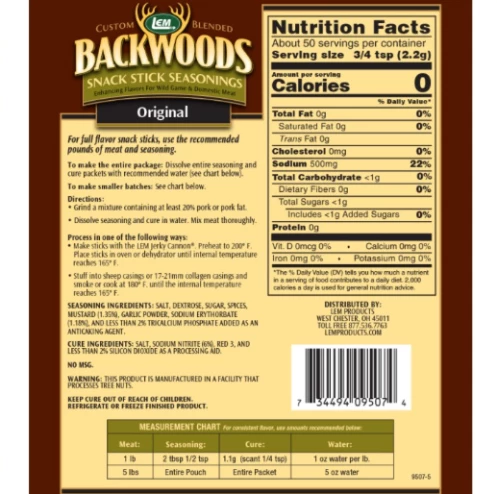 - Comes with 2 bags of Backwoods Seasonings: Snack stick and Original Jerky (makes 5 lbs. each)