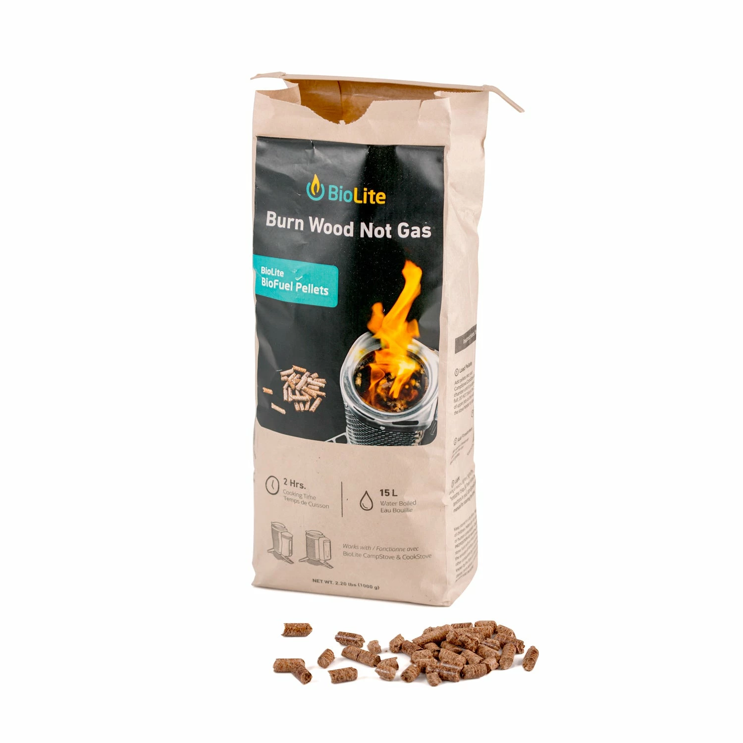 - Single bag provides two hours of cooking time with minimal refueling on the BioLite CampStove and CampStove 2