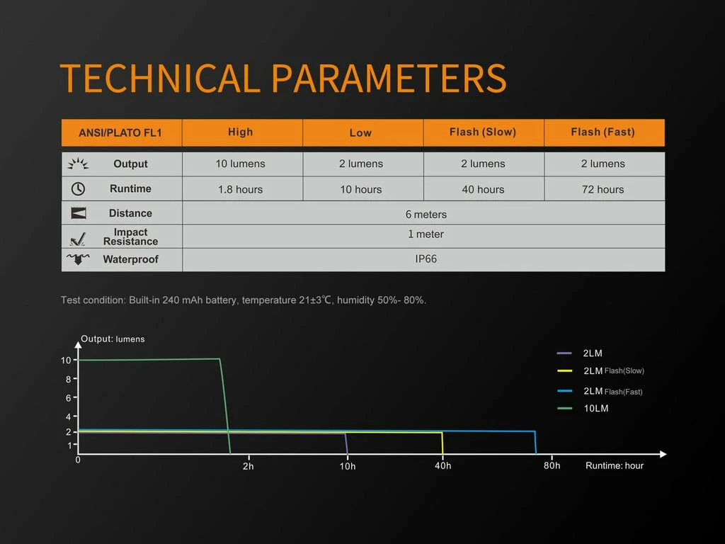 | OUTPUT | 10 Lumens | 2 Lumens | 2 Lumens | 2 Lumens |