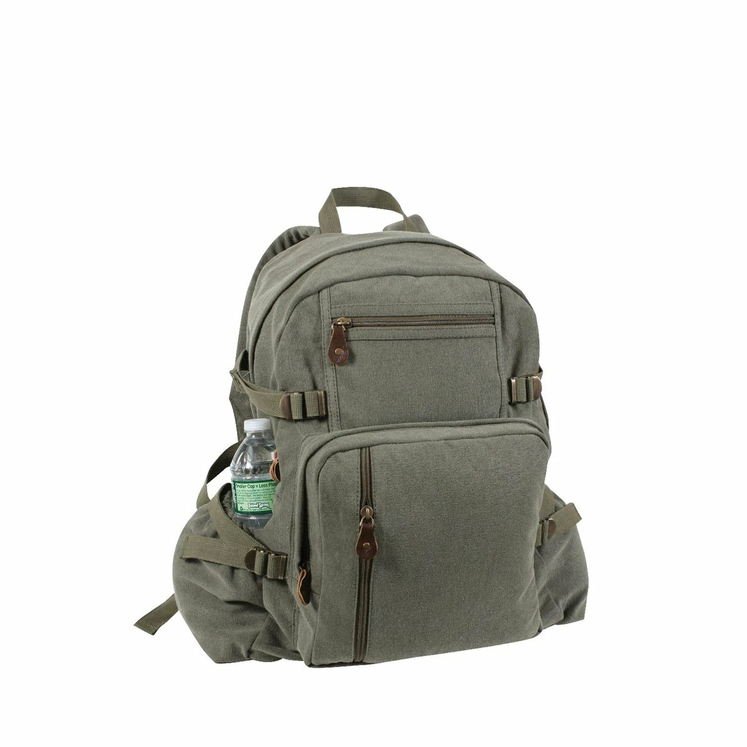 Rothco’s Jumbo Vintage Canvas Backpack is a classic backpack constructed with a vintage washed cotton canvas material.