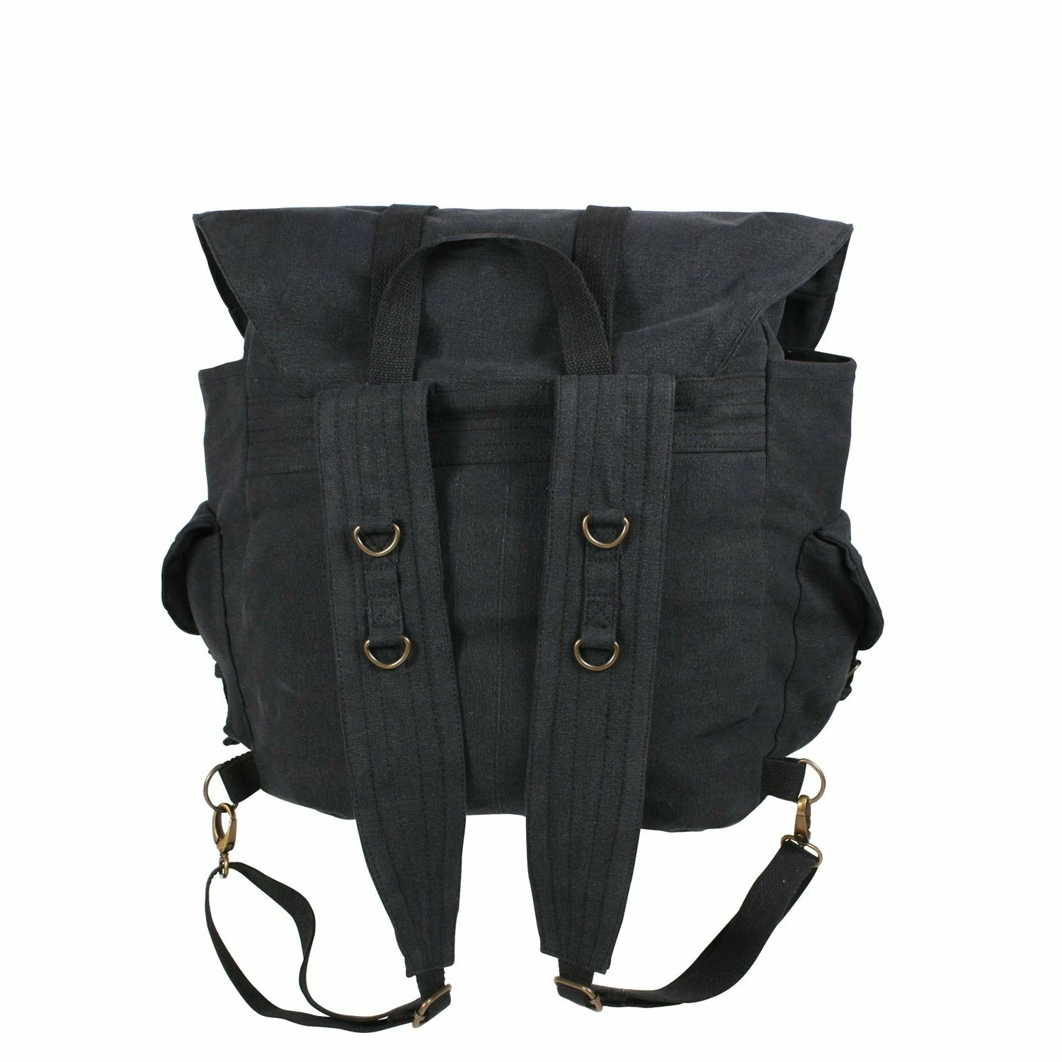 Rothco’s Vintage Weekender Bag is made using washed-out canvas and features 2 front inside pockets with drawstring closure, inner zipper pouch, 2 side pockets with flaps and side pockets with strap closures with metal buckles. Great spacious backpack for your next weekend getaway.