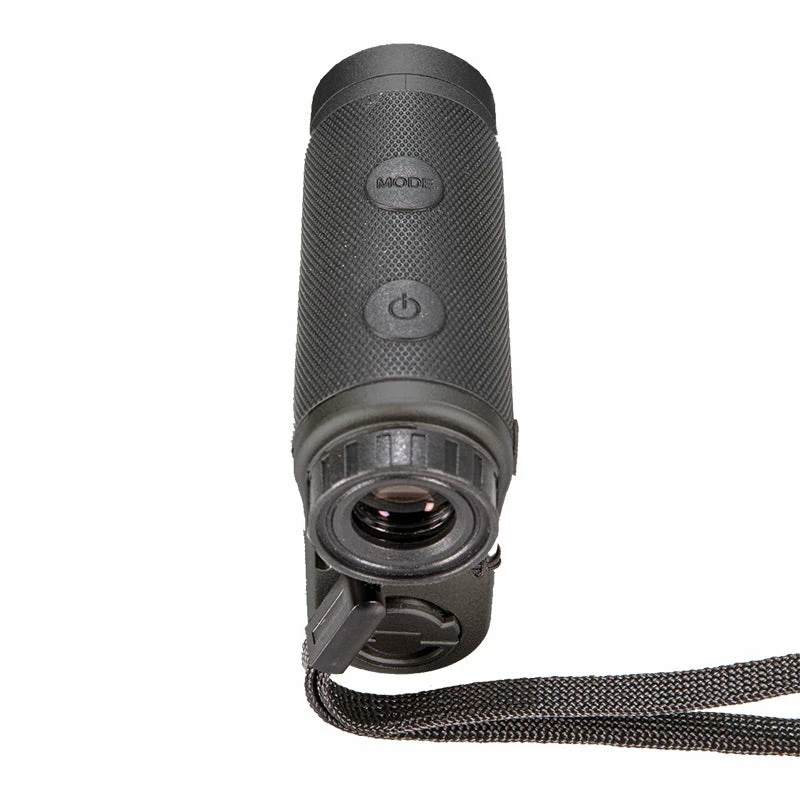 The compact and lightweight rangefinder is easy to use with two operating buttons to give you fast and accurate readings. The product includes a cleaning cloth, soft pouch, lanyard, and poly bag. The rangefinder runs on a single, long-lasting CR2 Battery. The PDLC Smart glass screen has a simple, clean easy to read display menu for quick and accurate readings.