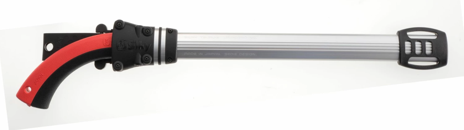 Thanks to Silky’s creative team, the TSURUGI comes to market as perhaps the lightest weight, best balanced “big saw” ever produced, having no handle screws, nuts or extraneous hardware to keep it together. The comfortable, 2-part rubber grip is held together by an ingenious integration with the blade tang. And as if the saw alone weren’t enough, each Silky TSURUGI handsaw comes in a unique aluminum scabbard that can be attached to the belt or leg depending on the users preference and has eight rollers protecting the entryway.
