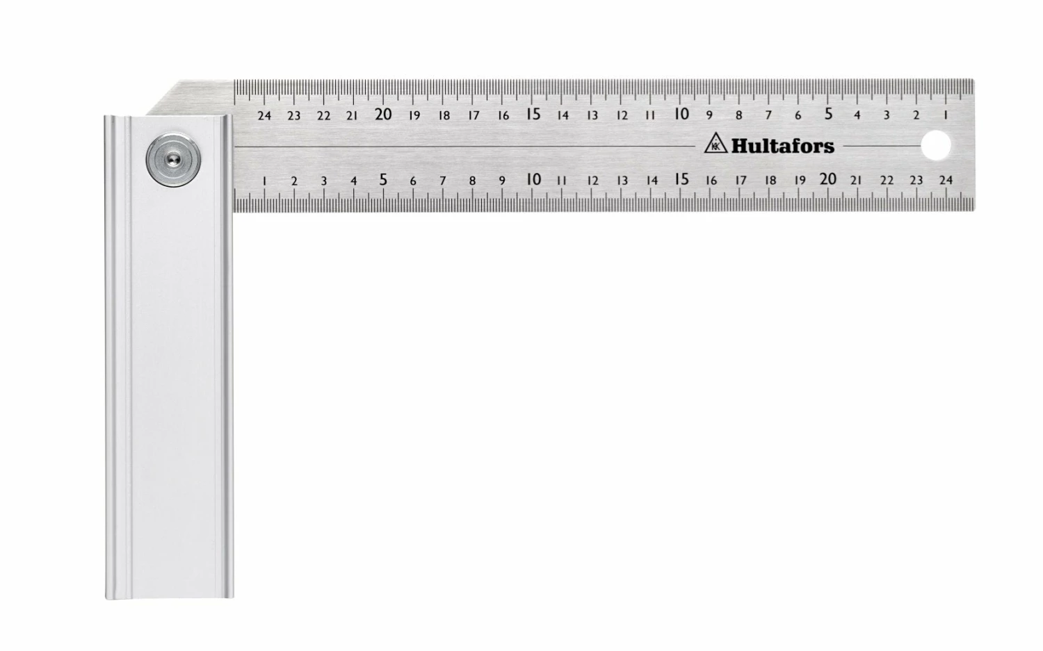 Square with millimetre graduations that can be set to three positions: 45, 90 and 135 degrees. The stock and blade can also be folded together, making it easy to store and keep in the pocket of your work trousers.