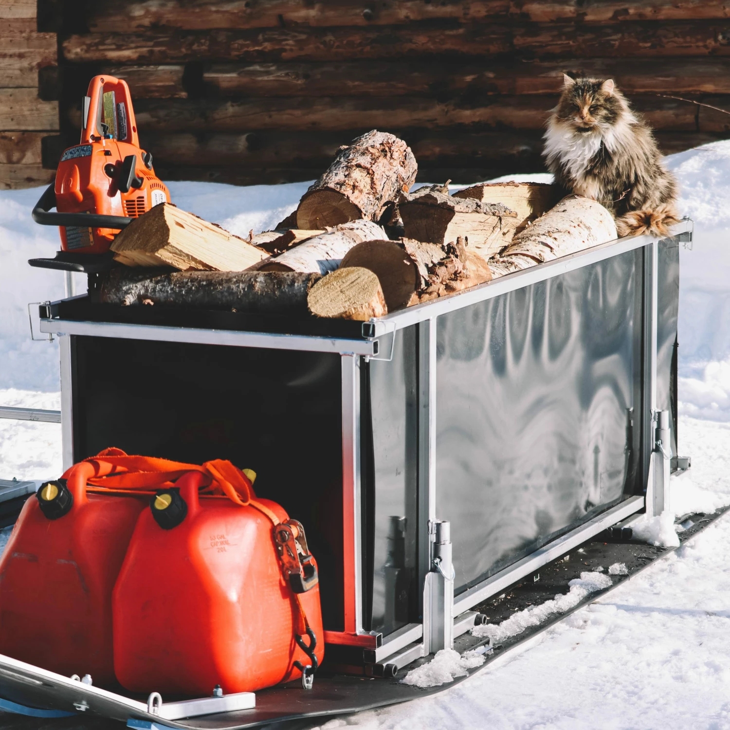 With optional accessories like the 4’x8′ Material Support Rack Set** and the Cargo Box**, the possibilities are endless. These come highly recommended to get the most out of your Xtreme Toboggan. Quickly and easily switch from hauling large logs to towing a broken down snowmobiles, generators, supplies, construction material, and so much more!