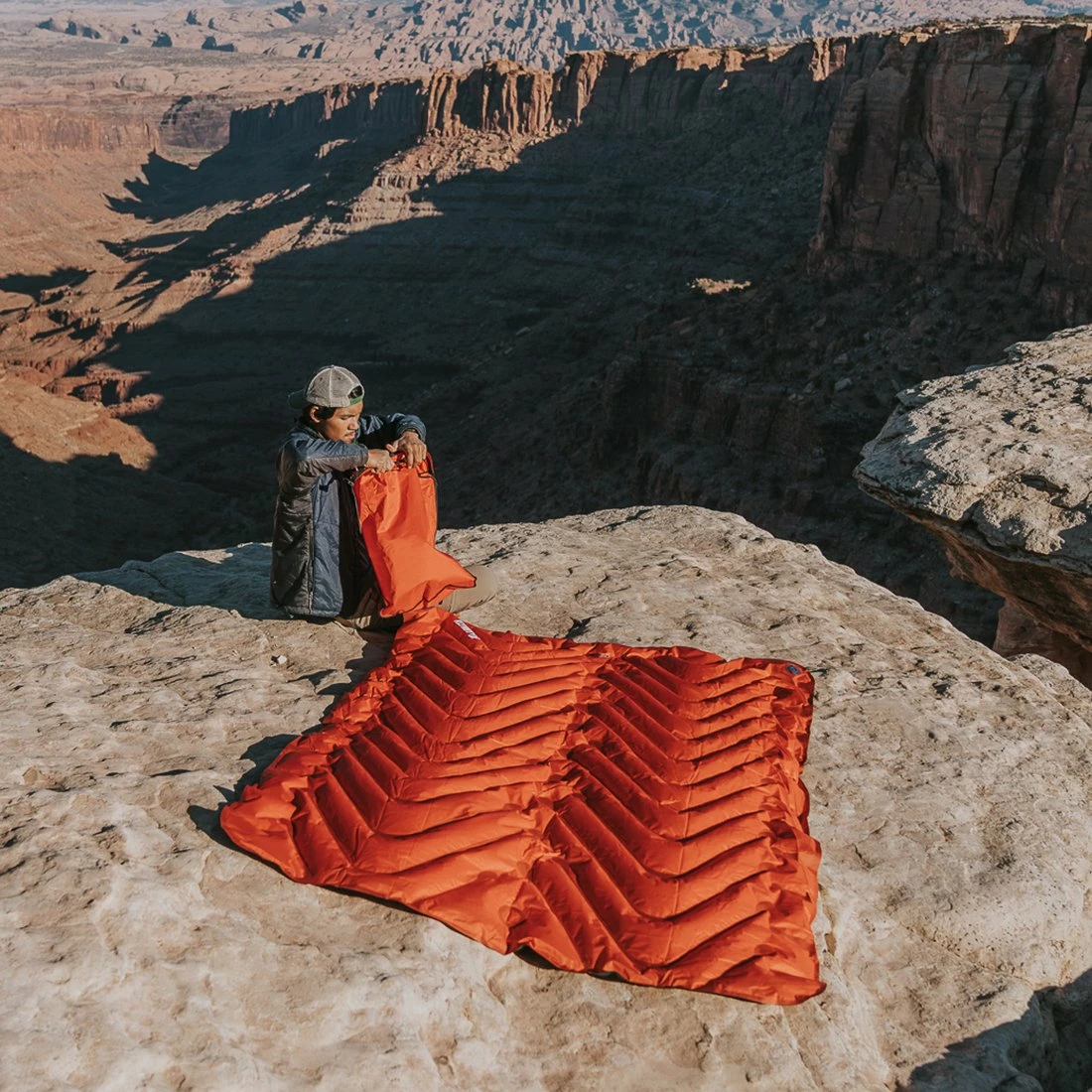Cozy up in the cold with your partner and Klymalite lofted synthetic insulation. Cold nights are the perfect excuse to cuddle – now you can share the same sleeping pad instead of fighting to keep two pads together. Like all our Klymalite insulated pads, the Insulated Double V isolates warmer air to the top of the pad, while the V-Chamber design limits the movement of air for optimal thermal performance. The Insulated Double V comes with a convenient, pump-integrated stuff sack for easy, rapid inflation.