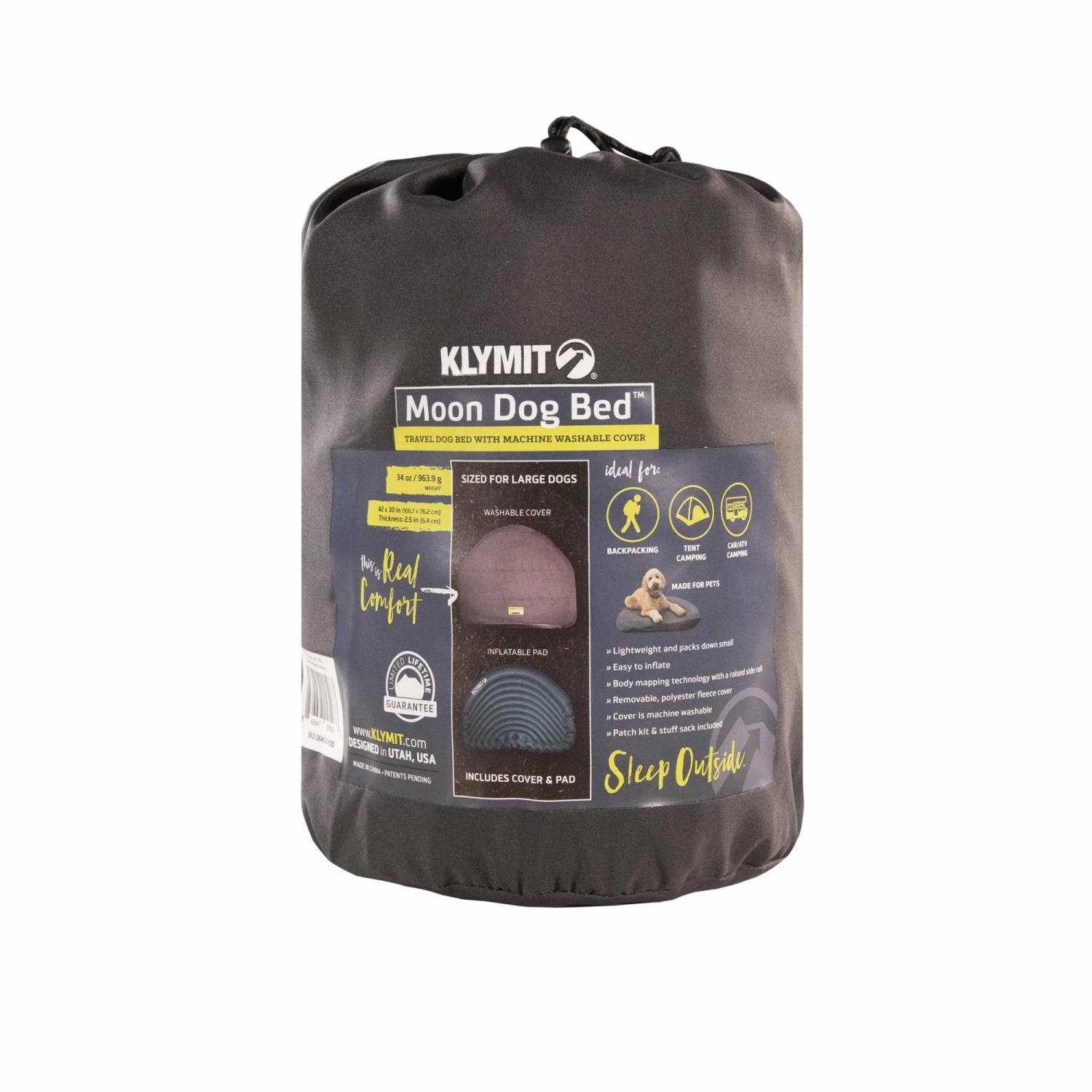 Stop sharing your Static V with your dog. Klymit’s first ever dog bed features its signature body mapping technology with a raised side rail to create a lightweight, inflatable bed. Durable fabrics provide extra protection against abrasion and moisture. The machine washable bed cover has a puncture resistant bottom with a soft fleece top. The bed can be used with or without the cover. A small pack size ensures you can use the bed for every adventure from backpacking to car camping.