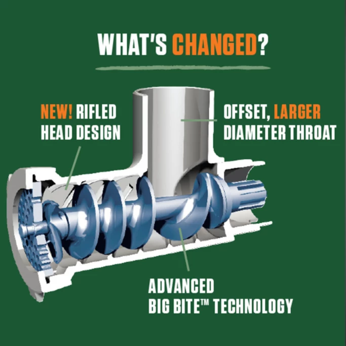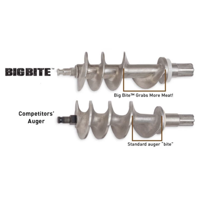 Our exclusive Big Bite technology allows the auger to take an extra big bite of meat and then move it into the grinder head quicker than other grinders. The benefit? You grind larger cuts of meat faster without clogging up the machine! A premium grind in half the time!