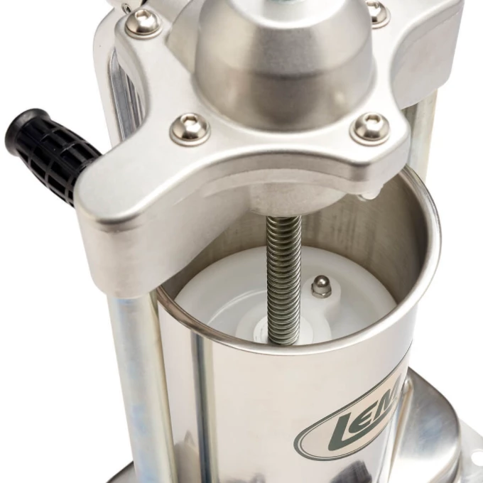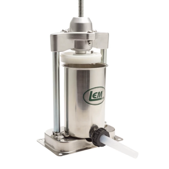 The Mighty Bite 5 lb. Stainless Steel Vertical Sausage Stuffer sets the bar for performance and dependability. The precision machined carbon steel gears are manufactured to eliminate slippage and wear, and won’t rust or collect germs. The cylinder is easily removed for clean-up. The hard plastic piston with a built-in release valve allows air to escape, making your job even easier. These are reliable, high performance, gear-driven stuffers that will last. For additional protection, the 5 lb. Sausage Stuffer now includes a protective gear box cover. This innovation takes safety and durability to the next level by ensuring your gears and your food are well protected.