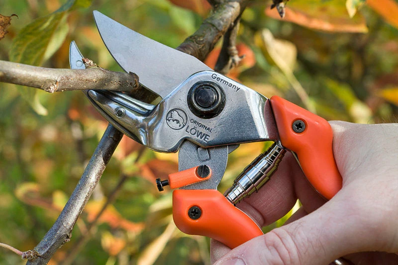 The LOWE 8.104 is a new Curved blade anvil pruner that combines the benefits of both anvil and bypass pruners. With its durable anvil, the LOWE 8.104 is able to easily cut through harder woods while still maintaining the curved bypass blades which prevent material from slipping out of the pruners. At the same time, unique adjustable handles ensure a perfect fit for either the left or right hand of any size from medium to large.