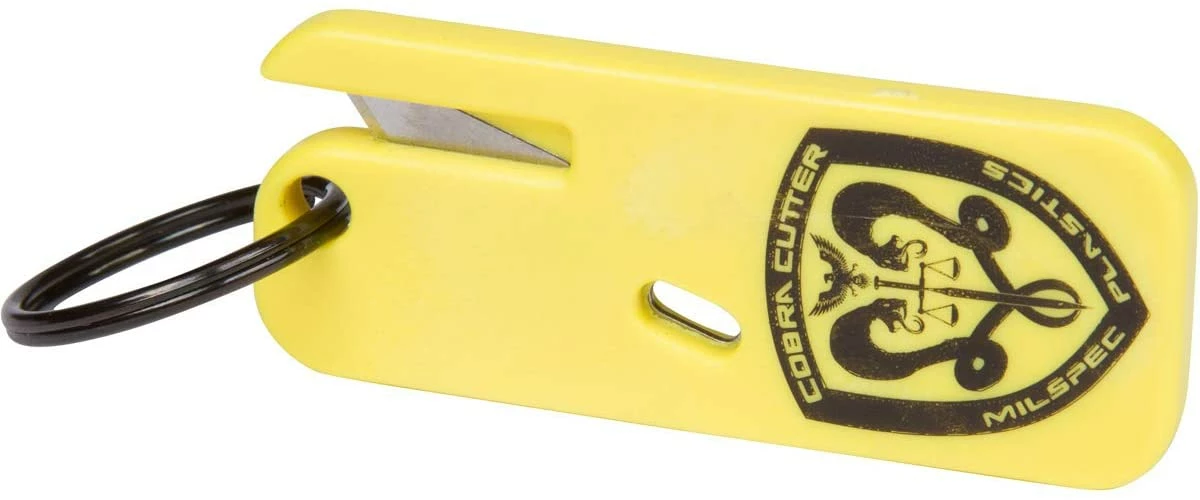 Cobra Cutter safety cutting tool functions as a key chain and safely cuts to release Cobra Cuffs & Xtreme Zip Ties. Made with unbreakable plastic resin which houses a recessed carbon steel blade to keep fingers safe. Also an excellent Emergency Seat Belt Cutter, Box Opener, etc.