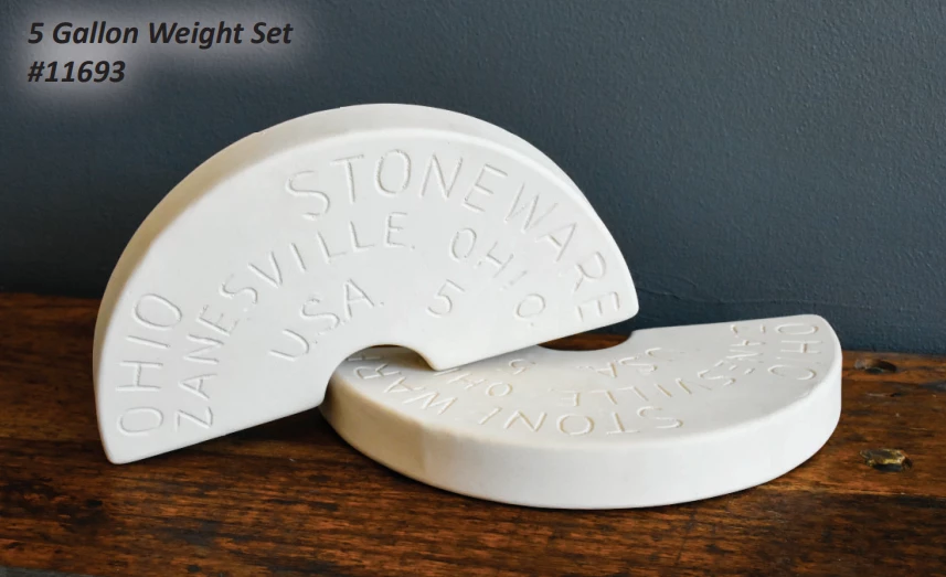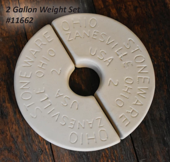 When purchasing our crocks, covers, and weights, please keep in mind that we carry six sizes of Ohio Stoneware preserving crocks, weights, and covers. Lid size and weight size should match the crock size, (I.e., 1 gallon lid pairs with the 1 gallon crock, and the 1 gallon weight set pairs with the 1 gallon crock). Available in 1, 2, 3, 4, 5, and 10 gallon sizes.