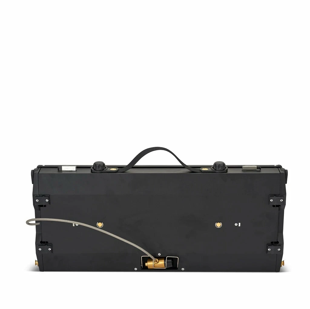 The sleek die-cast aluminum body, oak laths and brass details upgrade the look of any campsite and will hold up to many years of use. The internal pot supports and drip tray are removable for easy cleaning. When storing, simply lock closed – this slim-profile stove can be stashed almost anywhere.