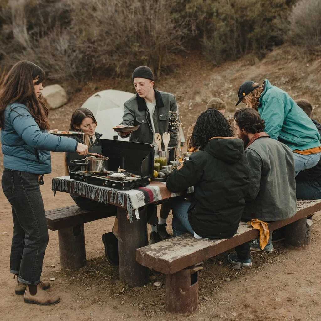 This streamlined 2 burner stove was developed to take “social” cooking outdoors to the next level. Inspired by campfires and the way that they draw people in, a 360 degree gathering spot, and a place to connect over drinks and a steaming plate of food, the Alike does all of this and more.