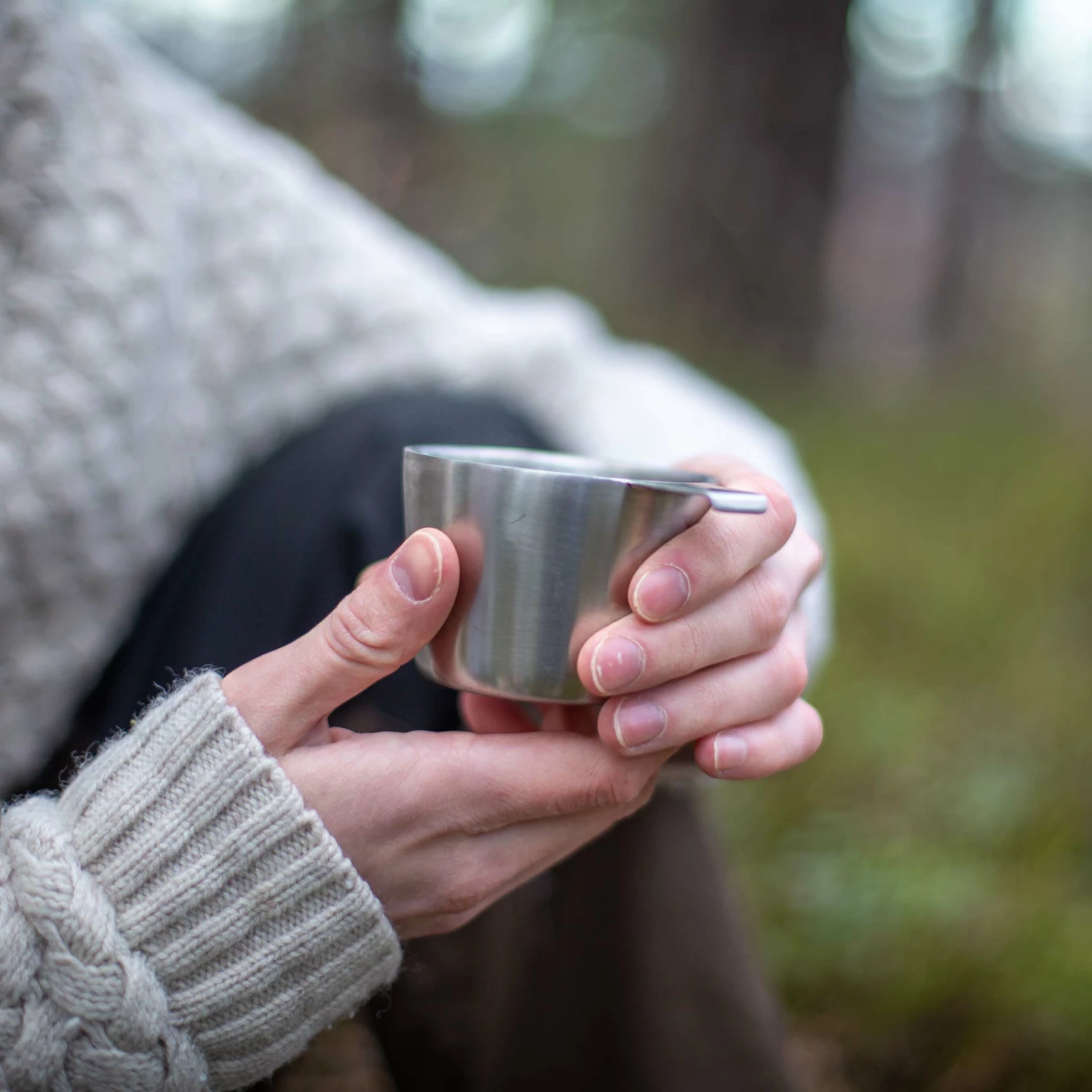 This stainless steel cup with a small grip attaches to any pack for quick access. Double-walled construction keeps water cold or your coffee hot. Food grade stainless steel is easy to clean and doesn’t retain flavours.