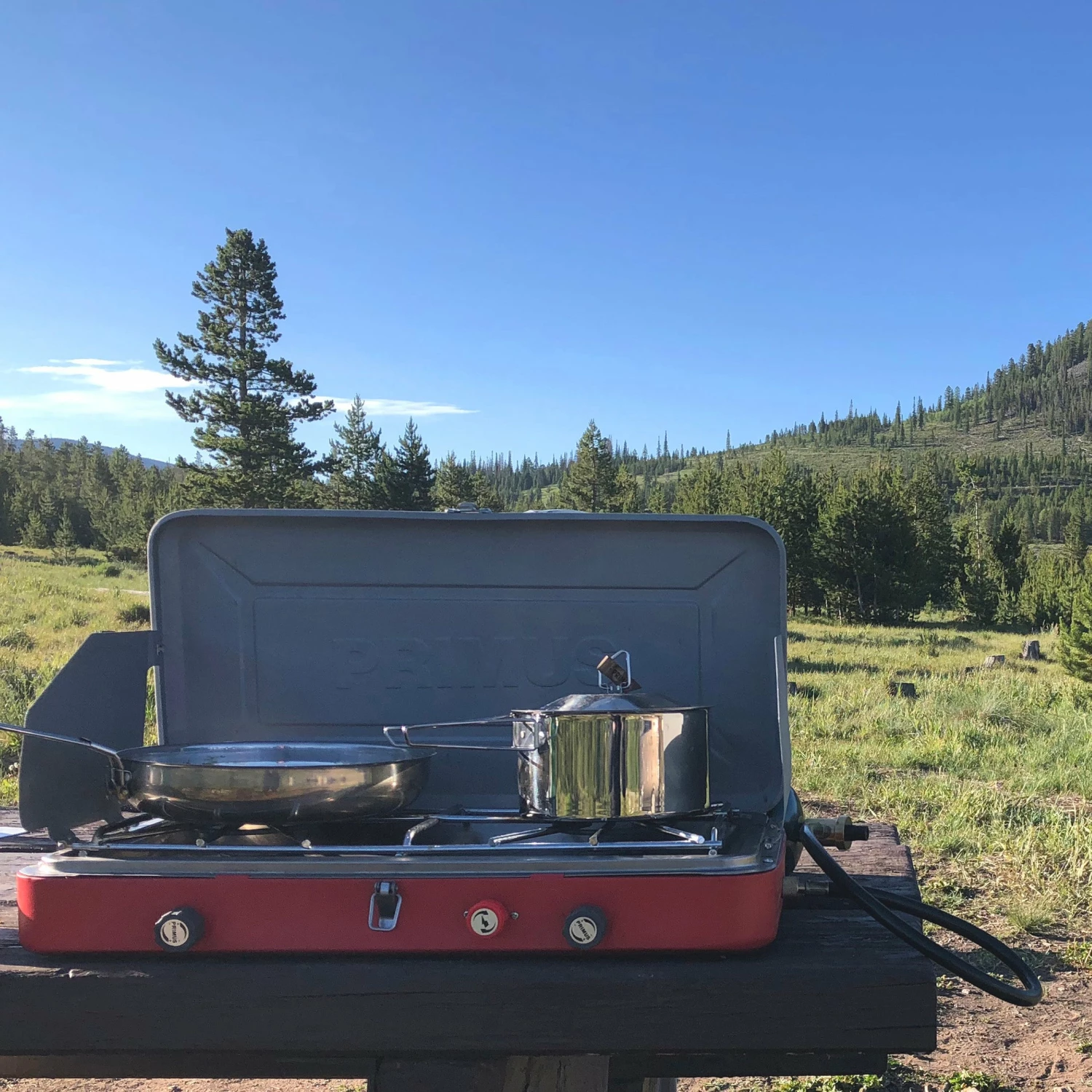 This classic 2 burner stove feeds the family (and even the extended family) with ease. This robust campsite workhorse can easily hold heavy pots, with stew for the group, while offering enough room for a skillet to fry up some eggs.