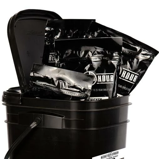 *The kit should be kept in a dark, cool place with temperatures ranging from 55 to 70 degrees. Cooler is better with Ready Hour Foods; long term heat can cause premature product expiration.