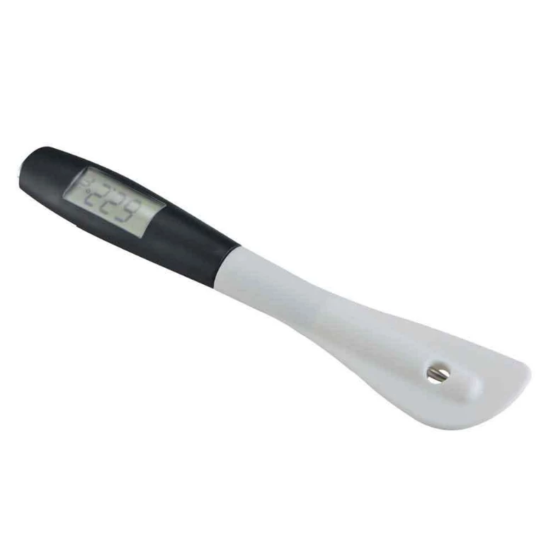 Integrated Thermometer: Silicone spatula with an integrated digital thermometer measures the temperature of what you’re stirring.